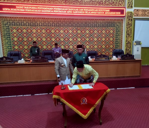 RIAUDETIL.COM, PELALAWAN – Dewan Perwakilan Rakyat Daerah (DPRD) Kabupaten Pelalawan melalui Rapat Paripurna Penyampaian Pembahasan Banggar dan Pengambilan Keputusan serta Penutupan Pembahasan Ranperda Tentang Perubahan APBD Kabupaten Pelalawan Tahun Anggaran 2025, Jum’at(22/8/2025) mengesahkan Anggaran Pendapatan dan Belanja Daerah (APBD) Perubahan Kabupaten Pelalawan tahun 2025 senilai Rp. 1.910.825.867.000,00