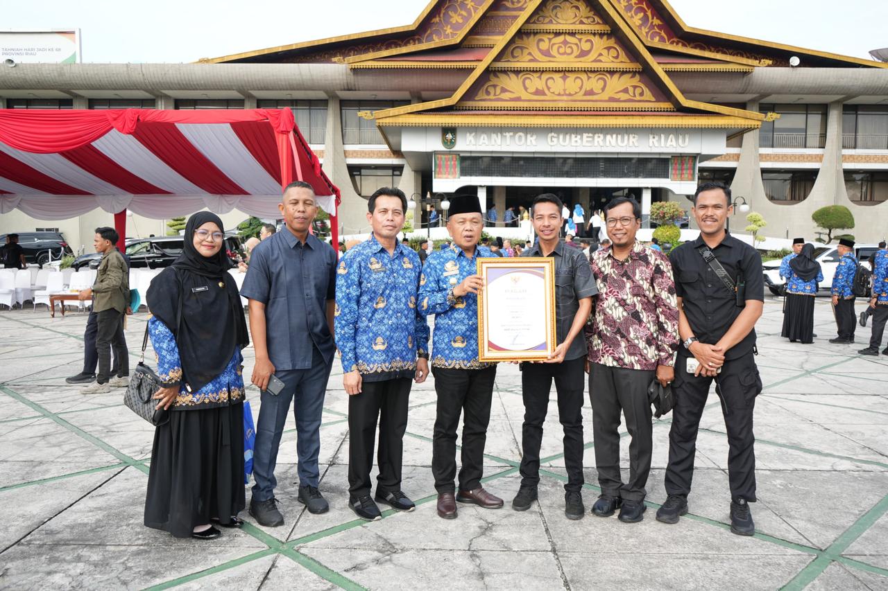 Penghargaan diserahkan Plt. Gubernur Riau, SF Haryanto, kepada Bupati Kepulauan Meranti, AKBP (Purn) H. Asmar, di halaman Kantor Gubernur Riau, Pekanbaru.