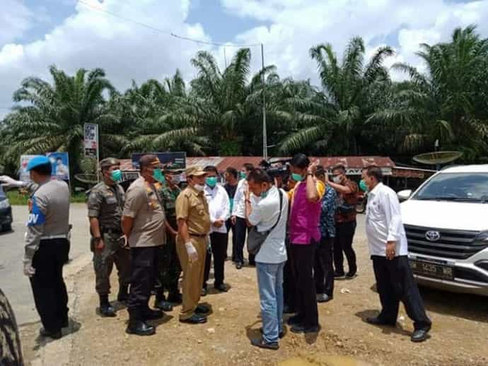 Bupati Rohul H Sukiman, Selasa (25/3/2020), lakukan peninjauan Tim gugus COVID- 19, yang kini sudah melaksanakan tugasnya dengan lakukan pembagian masker dan pengecekan suhu tubuh ke setiap orang yang masuk ke Kabupaten Rohul, baik dari Kampar, Bengkalis, Siak ataupun Pekanbaru.