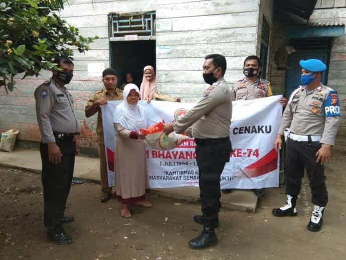 Penyerahan bantuan sembako untuk sejumlah janda Lansia di Desa Pejangki Kecamatan Batang Cenaku itu dilaksanakan Senin (22/6/2020) pagi, bersempena dengan peringatan hari Bhayangkara Ke-74 tahun 2020 bertema “Kamtibmas Kondusif Masyarakat Semakin Produktif”.