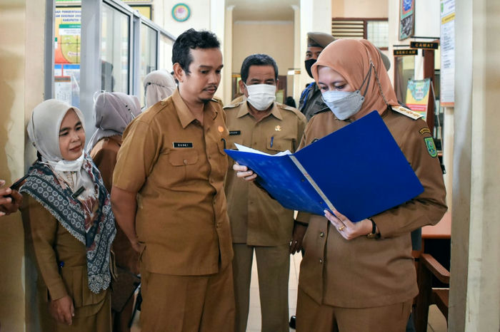 Di kantor Disdukcapil inhu, Rezita memeriksa loket pelayanan dan memantau proses kerja para ASN dalam memberikan layanan kepada warga yang sedang mengurus dokumen kependudukan.