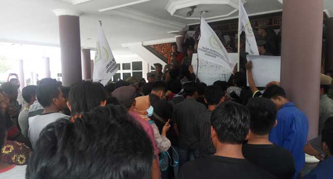 Hari ini Senin (14/1/2019) puluhan mahasiswa yang tergabung dalam Himpunan Mahasiswa Inhu menggelar aksi demo di tiga lokasi yaitu Kantor PLN Persero Area Rengat, Kantor Bupati dan Kantor DPRD lnhu.