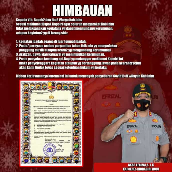 RIAUDETIL.COM, RENGAT – Kepala Kepolisian Resor (Kapolres) Indragiri Hulu (Inhu), AKBP Efrizal S.IK mengeluarkan imbauan pada masyarakat Inhu untuk tetap…