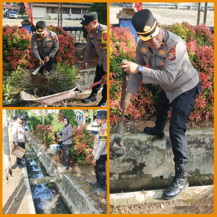 Bersama TNI dan Pemda Inhu, Polsek Rengat Barat Laksanakan kegiatan Gerakan Bersama Bersih Serentak ASRI