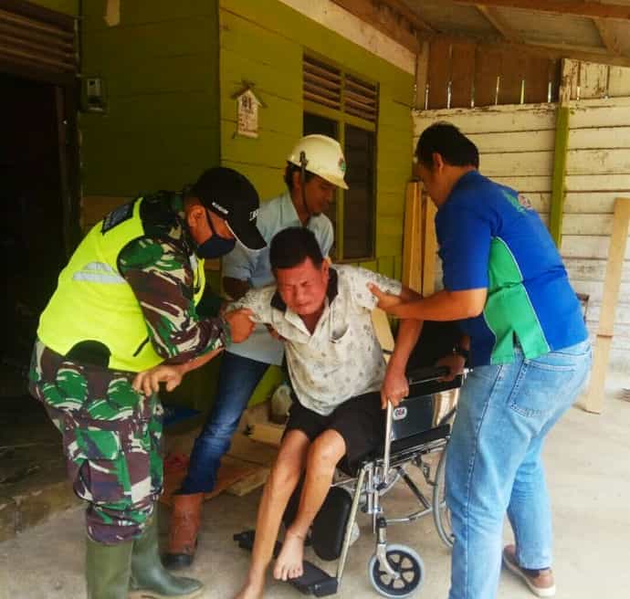 Kemudian dirinya berupaya membantu dengan mengajukan bantuan kepada PT. SSR, hal ini mendapat respon positif dari perusahaan dengan membelikan kursi roda untuk warga tersebut, terang Anggota Kodim 0302 lnhu tersebut.