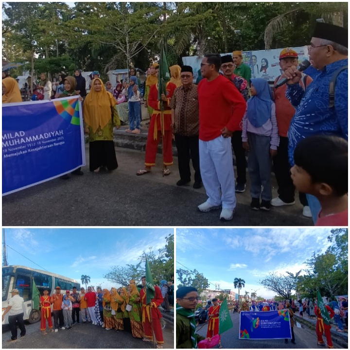 Pelalawan,riaudetil.com – Bupati Pelalawan H. Zukri SM.,MM secara resmi melepas peserta pawai dalam rangka memperingati Milad Muhammadiyah ke-113, Sabtu (15/11/2025). Pelepasan pawai dipusatkan di Taman Kenangan dan pawai berakhir di Lapangan Mini Soccer Pangkalan Kerinci. Kegiatan ini turut dihadiri Asisten I Setda Pelalawan Zulkifl, Ketua Pimpinan Daerah Muhammadiyah Kabupaten Pelalawan beserta jajaran pengurus, para tokoh masyarakat, alim ulama, guru, serta ratusan peserta yang didominasi pelajar dan warga Muhammadiyah.