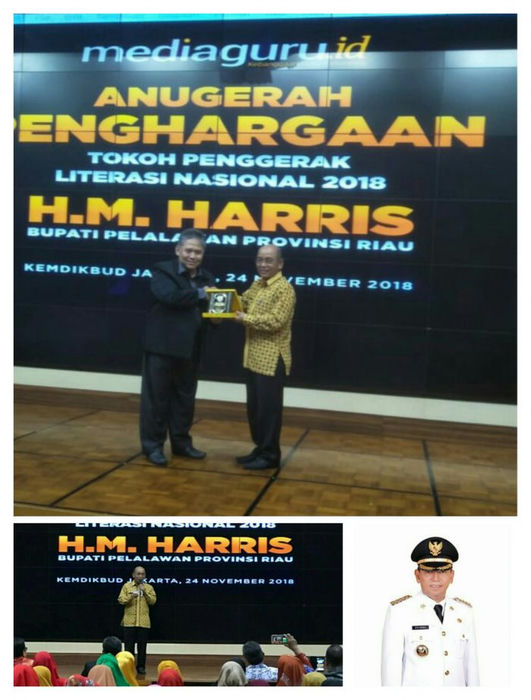 Penghargaan diserahkan langsung oleh Mohammad Ihsan Pemimpin Umum Majalah Media Guru Indonesia kepada Bupati Pelalawan H.M.Harris yang merupakan satu – satunya kepala daerah yang meraih penghargaan dalam ajang ini. Selain Bupati Pelalawan, penghargaan juga di erikan kepada Drs. Burhasman,MM Krpala Dinas Pendidikan Propinsi Sumbar, Dr. Hj. Eti Fahriaty, S.Pd.M.Pd Kepala Dinas Pendidikan Kota Pangkal Pinang,Amin Hidayat Kepala Dinas Pendidikan Kabupatrn Krobogan dan terakhir Sarjono,S.Pd.M.Pd Ketua PGRI Purbalingga.