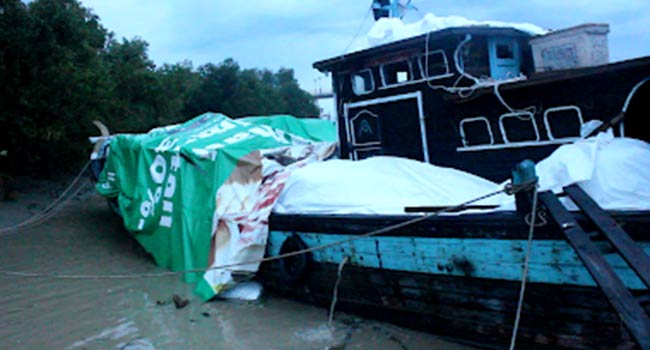 Kapal motor berkapasitas 20 GT ini mengangkut 60 ton pakaian serta sepatu bekas asal malaysia yang ingin diselundupkan ke berbagai daerah di sumatera.