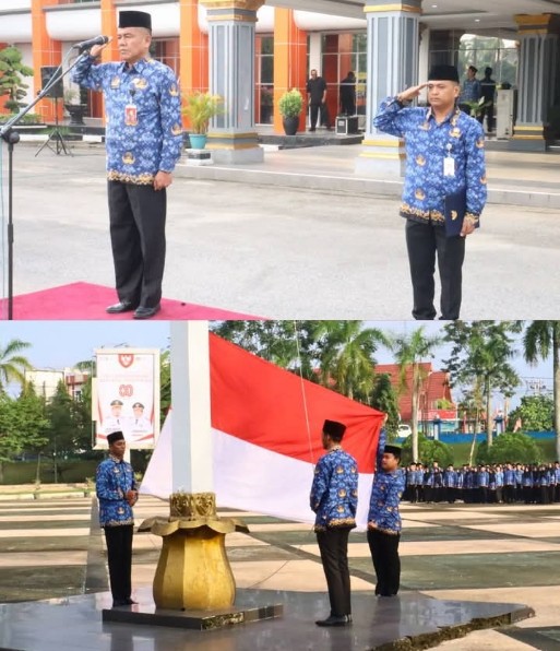 Pj Sekda Pimpin Upacara Pengibaran Merah Putih di Kantor Bupati Inhu