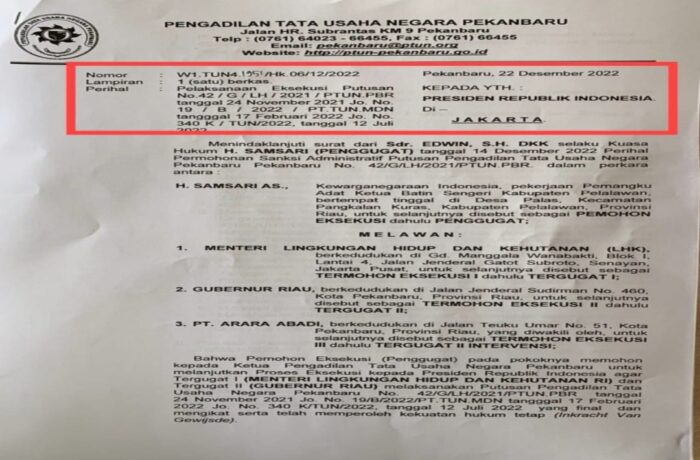 RIAUDETIL.COM,PEKANBARU — Pengadilan Tata Usaha Negara Pekanbaru menyurati Presiden RI tetkait eksekusi putusan PTUN yang mesti dilakukan oleh Menteri…