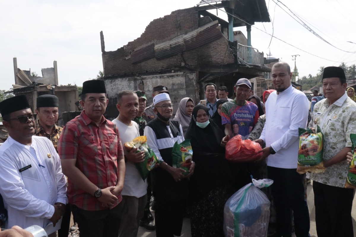 Sebagai bentuk kepedulian Pemkab Inhu melalui Dinas Sosial menyerahkan bantuan berupa 14 paket sembako yang diperuntukkan bagi 14 Kepala Keluarga pemilik 16 kios yang kehilangan tempat usaha dengan jumlah 53 jiwa.