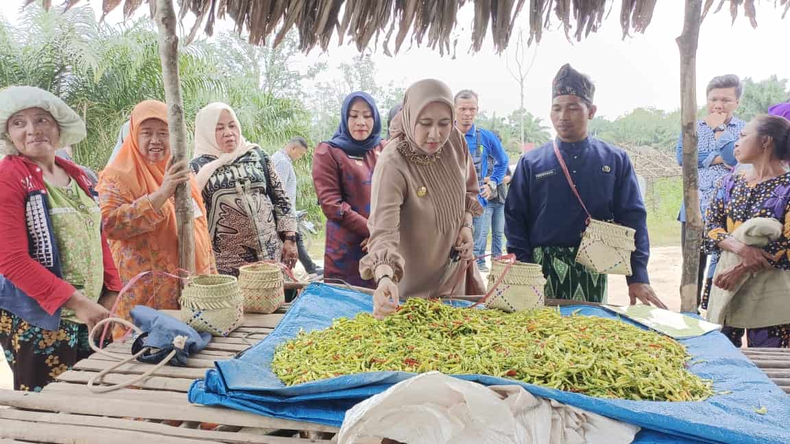 Di talang Gedabu, Bupati menyempatkan untuk mencoba menganyam pandan bersama suku asli talang dan menyaksikan panen cabe di lahan Kelompok Wanita Tani (KWT) Rawa Batat, lahan kebun cabe seluas 0,25 Ha ini dikembangkan melalui dana bumdes.
