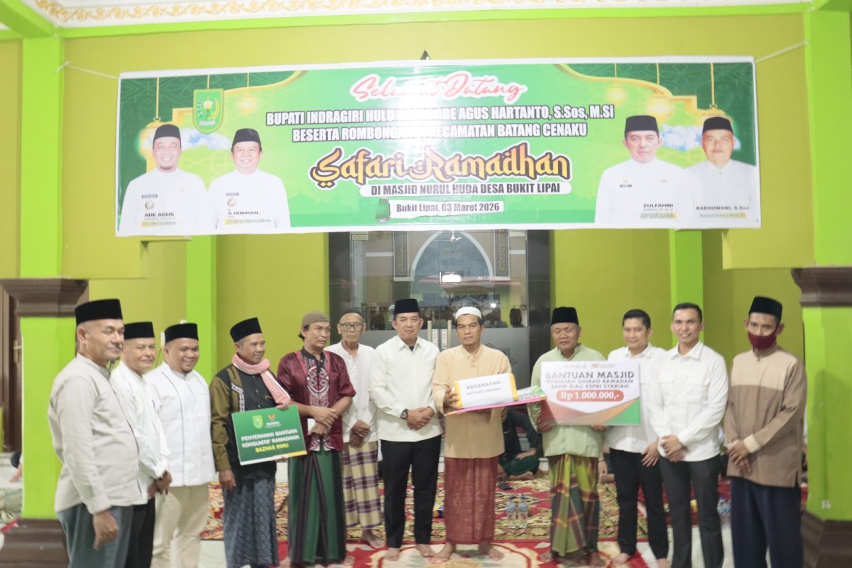 RIAUDETIL.COM, INHU – Sekretaris Daerah Kabupaten Indragiri Hulu (Inhu) Zulfahmi Adrian AP MSi didampingi Ketua Dharma Wanita Persatuan (DWP) Inhu Raja Vivi Olivia Zulfahmi, menghadiri Safari Ramadhan hari ke-4 di Kecamatan Batang Cenaku, Selasa (3/3/2026).