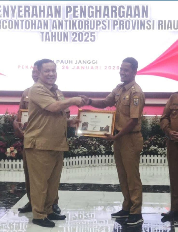 RIAUDETIL.COM, PELALAWAN – Desa Beringin Makmur Kecamatan Kerumutan Kabupaten Pelalawan meraih Penghargaan Desa Percontohan Antikorupsi Provinsi Riau Tahun 2025. Penghargaan tersebut diserahkan langsung oleh Plt Gubernur Riau, SF Hariyanto, pada Senin (26/01/2026) lalu di Gedung Daerah Pauh Janggi, Pekanbaru.
