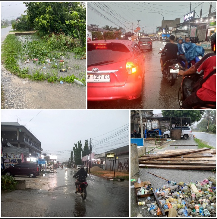 Pantauan riaudetil.com dilokasi banjir pada ,beberapa titik tampak beberapa ruas jalan lintas timur tergenang banjir akibat drainase kota yang meluap, 4 titik banjir juga menutupi jalan Pemda, jalan akasia,KM 55,jalan lingkar dan lainnya.Sejumlah perumahan juga terlihat tergenang banjir hingga sampah – sampah dari drainase ikut keluar dan tergenang.
