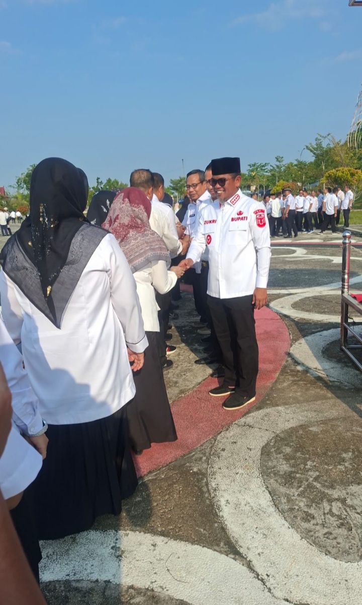Pelalawan,riaudetil.com – Bupati Pelalawan H. Zukri, SM.,MM memimpin apel pagi sekaligus kegiatan halal bihalal bersama seluruh Aparatur Sipil Negara (ASN) di lingkungan Pemerintah Kabupaten Pelalawan, Rabu (25/3/2026). Kegiatan ini dilaksanakan di halaman Kantor Bupati Pelalawan pada hari pertama masuk kerja setelah cuti bersama Hari Raya Idul Fitri 1447 Hijriah.