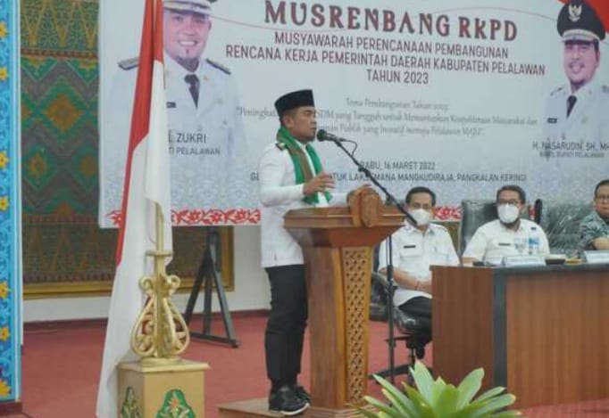 “Musrenbang RKPD ini merupakan mata rantai dari tahapan perumusan Rencana Kerja Pemerintah Daerah yang melibatkan seluruh para pihak untuk berpartisipasi aktif sebagai bagian dalam proses penyempurnaan penyusunan RKPD Kabupaten Pelalawan Tahun 2023. Saya berharap pelaksanaan Musrenbang RKPD Kabupaten Pelalawan Tahun 2022 untuk penyusunan Rencana Kerja Pemerintah Daerah Tahun 2023 dapat menghasil beberapa kesepakatan nantinya,” ujarnya.