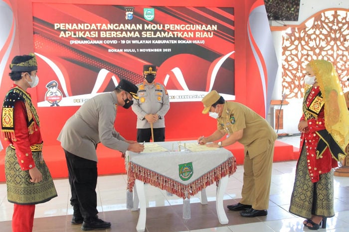 RIAUDETIL.COM, ROHUL – Kapolda Riau Irjen Pol. Agung Setya Imam Effendi, Senin (1/11/2021), launching Aplikasi Bersama Selamatkan Riau (BSR) di Pendopo Rumah Dinas Bupati Rokan Hulu (Rohul).