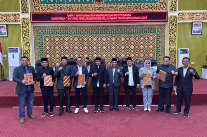 Pelalawan,riaudetil.com – Dewan Perwakilan Rakyat Daerah (DPRD) Kabupaten Pelalawan menggelar Rapat Paripurna, dalam rangka Penyerahan Rancangan Peraturan Daerah (Ranperda) tentang Anggaran Pendapatan dan Belanja Daerah (APBD) Kabupaten Pelalawan tahun anggaran 2024. Kegiatan ini digelar di Ruang Rapat Paripurna lantai 2 Gedung DPRD Pelalawan,Jum’at (24/11/2023).